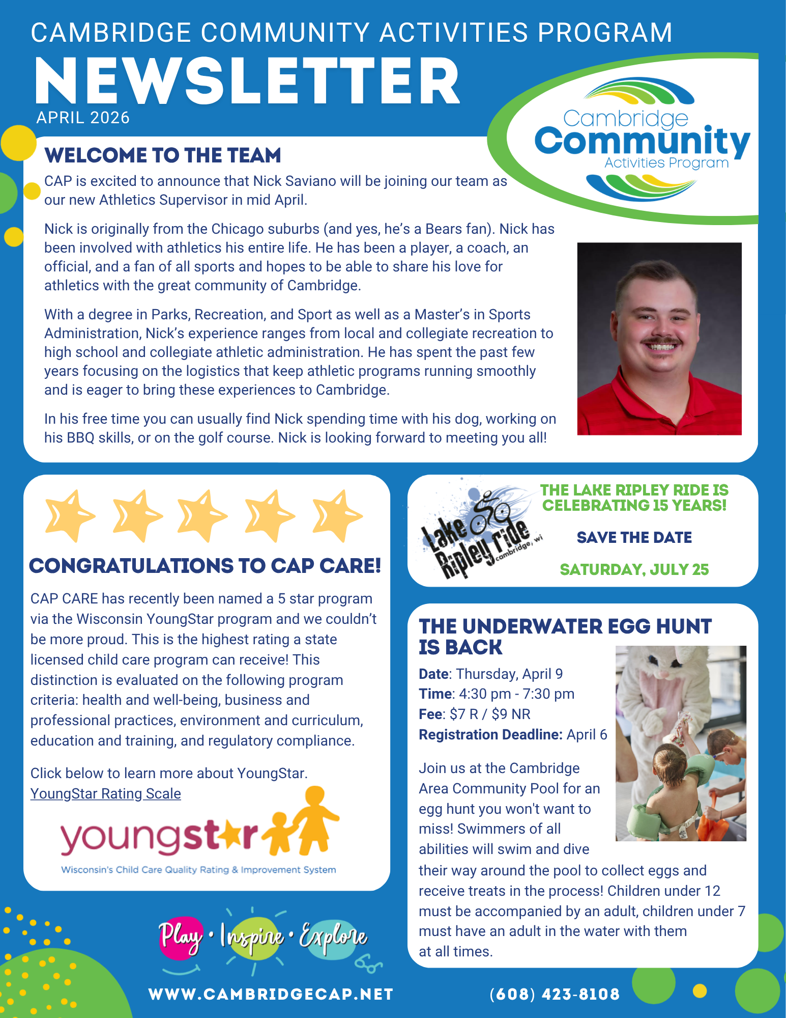Encouraging and promoting life-long wellness by providing a variety of high-quality recreational activities, learning opportunities, aquatics programs, and services to the broad Cambridge area community.